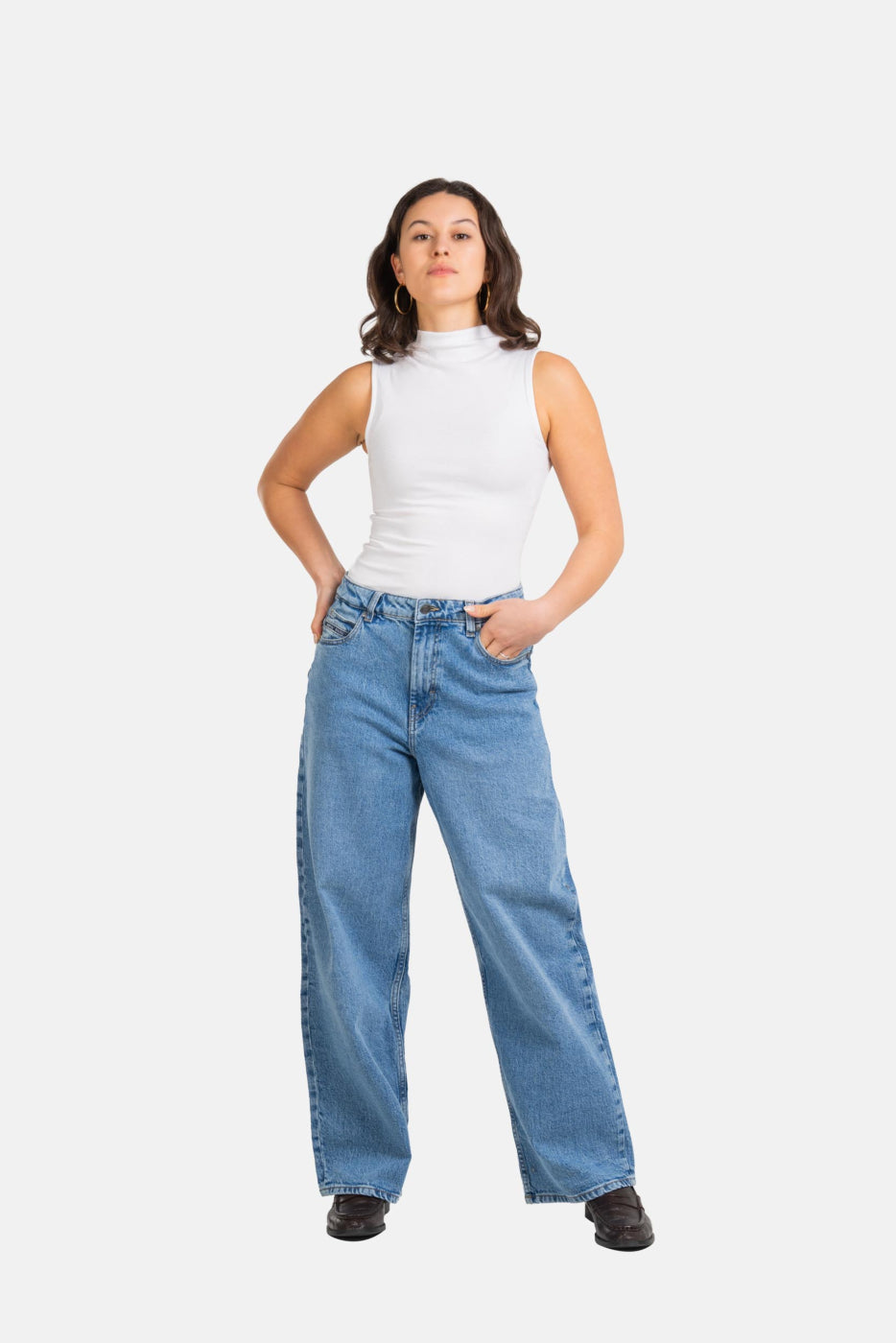 Cut with a lower crotch and a low waist, the Women Chloé Baggy adds fresh urban vibes to the Women collection. The regular five-pocket construction leaves the focus on the ultra-wide baggy design.